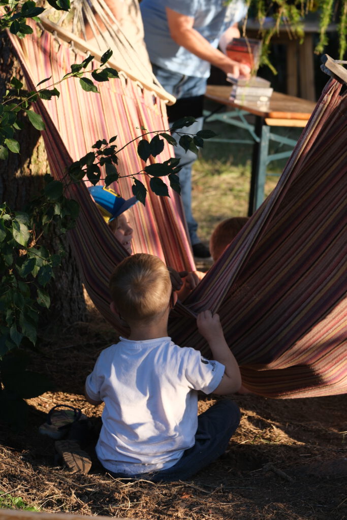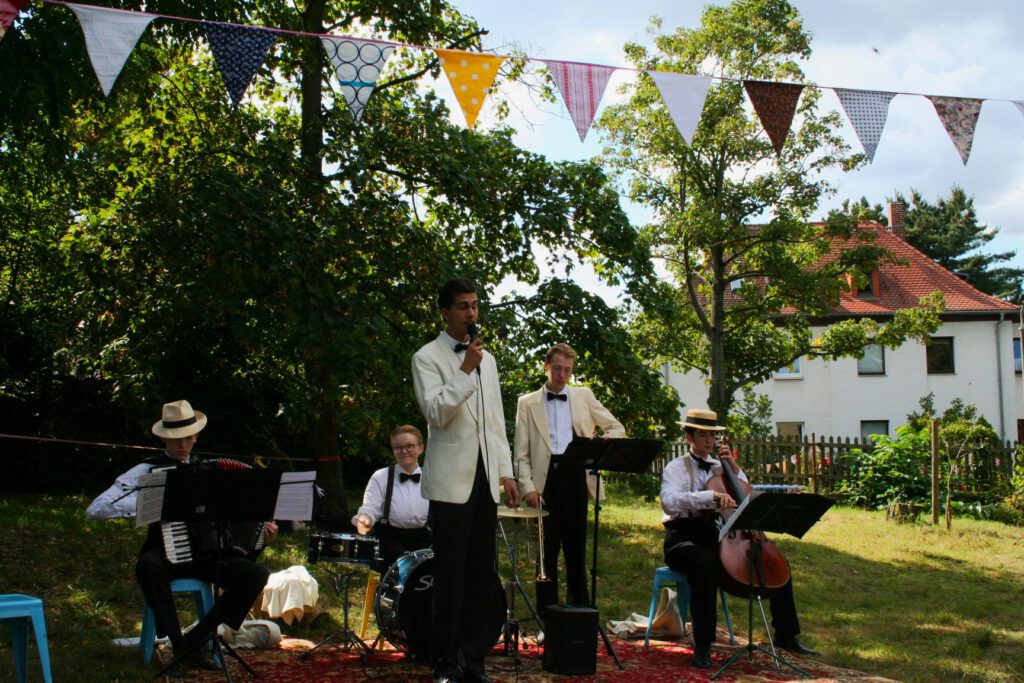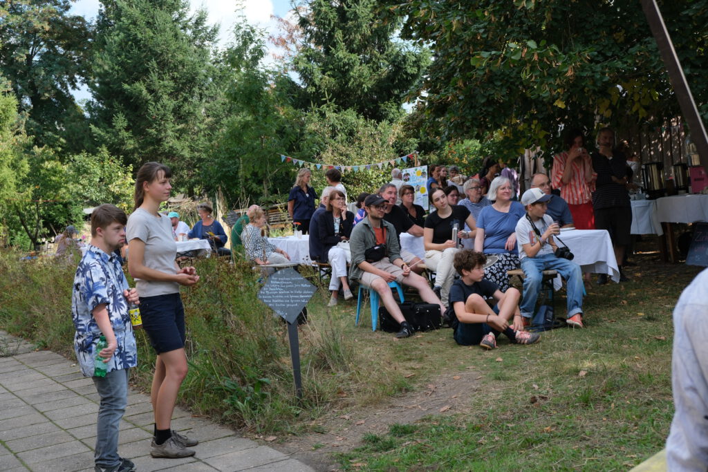 Unser Garten war voll mit Menschen.
