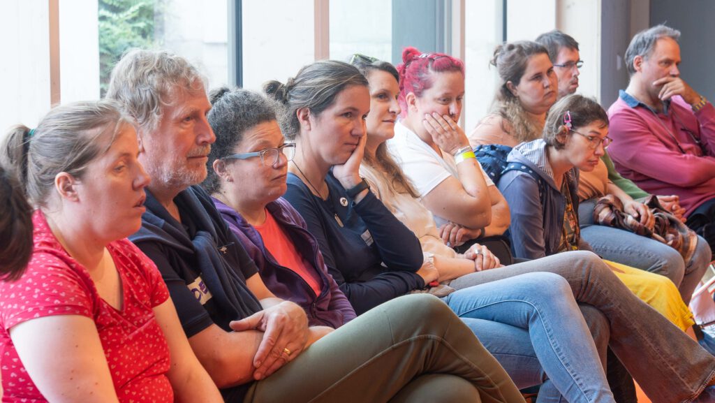 Wir haben außer·dem in einigen Arbeits·gruppen über Themen wie zum Bei·spiel Inklusion und Bildung oder Wohnen mit Assistenz·bedarf ge·sprochen.